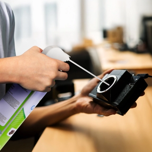 Ideaal voor het afblazen van de camerabody en optiek. Verwijdert stofdeeltjes zonder risico op beschadiging van gevoelige componenten.