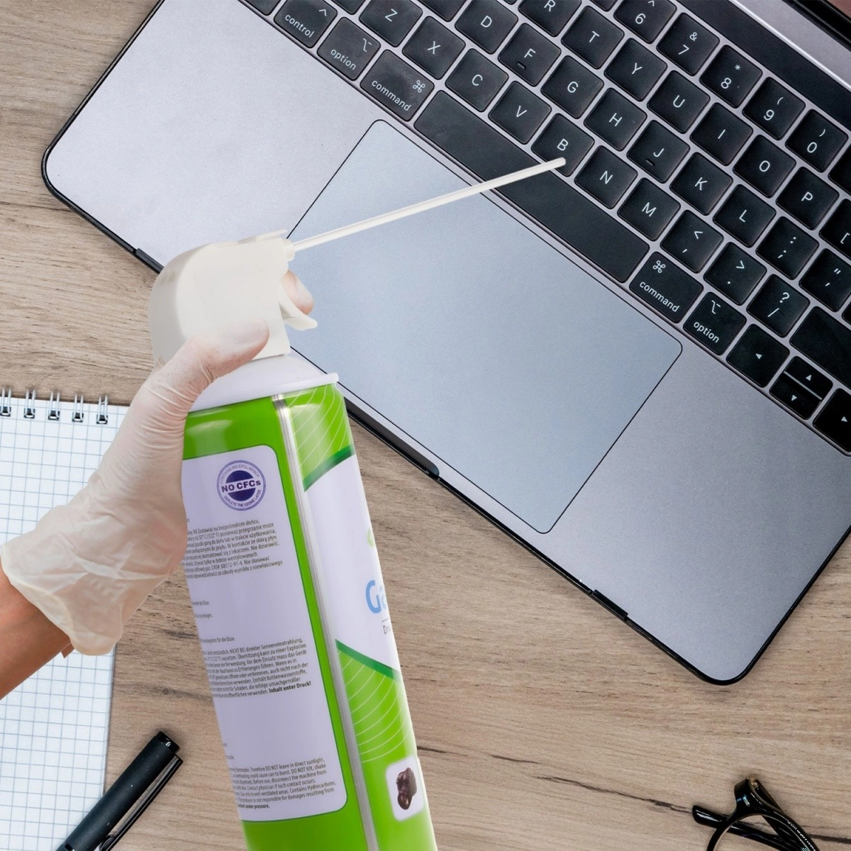 GREENBLUE gecomprimeerde lucht in een spuitbus van 400 ml is ideaal voor regelmatig onderhoud van gevoelige elektronica. Dankzij het dunne capillaire mondstuk richt u de luchtstroom precies waar nodig en verwijdert u eenvoudig stof, kruimels of pluis uit smalle kieren en hoeken.