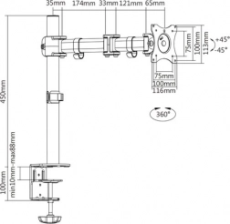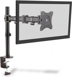 Optimaliseer je werkplek met een duurzame bureausteun voor monitors in zwarte poedercoating. Dankzij 360° rotatie (pivot) en kanteling ±45° bereik je eenvoudig de ideale kijkhoek voor werk, gamen en contentconsumptie. De robuuste metalen constructie en klembevestiging aan het bureau garanderen stabiliteit en veiligheid.