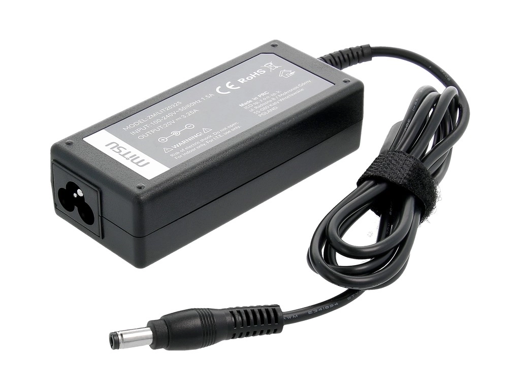 Betrouwbare voedingsadapter van het merk Mitsu voor FUJITSU- en MAXDATA-laptops met een vermogen van 65 W, uitgang 20 V / 3,25 A en ronde connector 5,5 × 2,5 mm. Biedt bescherming tegen overspanning, overbelasting, oververhitting en kortsluiting en is uitgerust met een ferrietfilter voor stabiele en veilige voeding.