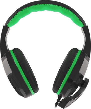 De microfoon op een opklapbare arm vangt je stem duidelijk op voor teamcommunicatie. De zwart‑groene uitvoering geeft je setup een echte gamingsfeer.