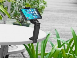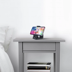 De montage is zo gepiept: klem de houder simpelweg op de rand van een tafel, een plank, een vliegtuigtafeltje of het handvat van een kinderwagen. Hij werkt ook uitstekend als bureaustandaard op je nachtkastje of bureau. Dankzij het opvouwbare ontwerp past hij in je broekzak of kleine handtas, zodat je hem altijd bij de hand hebt.