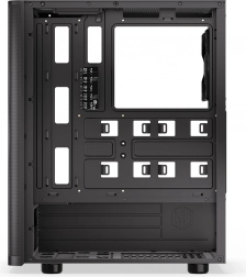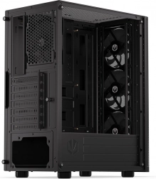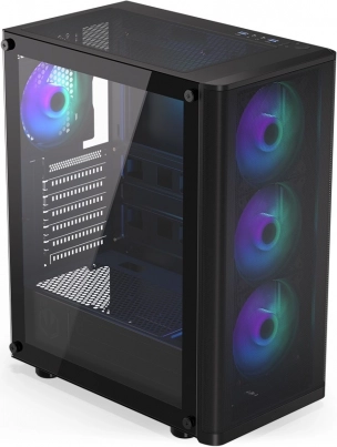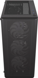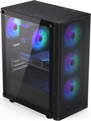 Het zijpaneel van gehard glas laat je componenten en het adresseerbare ARGB-licht tot hun recht komen. Ondanks het compacte formaat (440 × 216 × 373 mm) biedt de behuizing comfortabel plaats aan een ATX-bord, opslag 3 × 2,5" of 1 × 3,5" + 2 × 2,5" en tot 7 ventilatoren. Voor waterkoeling is er ondersteuning voor een radiator van 360 mm aan de voorkant en 240 mm bovenaan – ideaal voor krachtige systemen.