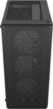 Drie inblaas- en één uitblaasventilator zijn af fabriek geïnstalleerd, extra’s voeg je eenvoudig toe. FDB-lagers zorgen voor stille werking, PWM-regeling past het toerental aan de belasting aan en ARGB levert een indrukwekkende lichtshow.
