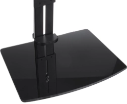 De geïntegreerde glazen plank biedt plaats aan een Blu‑ray speler, set‑topbox, gameconsole of tablet en helpt kabels en accessoires overzichtelijk op één plek te houden.