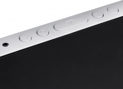 Het minimalistische design met zwart front en witte behuizing oogt elegant; de stabiele standaard maakt het eenvoudig om hem op een tafel of nachtkastje te plaatsen. Voeding via USB zorgt voor eenvoudige aansluiting en een laag verbruik.