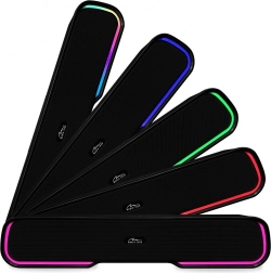 De soundbar ondersteunt meerdere bronnen: draadloos via Bluetooth, bekabeld via AUX, of speelt MP3’s rechtstreeks af van een microSD-kaart en USB-stick. De ingebouwde FM-radio met automatische afstemming vergroot je luistermogelijkheden. Dankzij de geïntegreerde microfoon kun je comfortabel handsfree bellen. Je kunt de RGB-verlichting laten pulseren op de muziek, een statische kleur instellen of volledig uitschakelen.