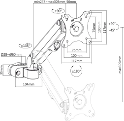 De houder is uitgerust met een gasveer, waarmee je de monitorhoogte gemakkelijk en soepel kunt aanpassen. Compatibel met VESA 75x75 en 100x100 mm, waardoor probleemloze montage van schermen van verschillende merken zoals Sony, LG, Samsung, Philips en andere mogelijk is.