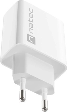 Universele netlader NATEC Ribera met één USB‑A-poort en een vermogen van 18 W ondersteunt snel opladen (QC 3.0, Samsung AFC, Huawei FCP/SCP), past de parameters intelligent aan en beschermt je apparaten dankzij OVP/OCP/SCP/OTP-beveiligingen. Compact en licht, ideaal voor thuis en op reis.