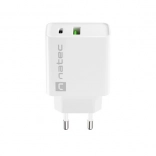 Netvoedingslader NATEC Ribera 20W, 1× USB‑C + 1× USB‑A, wit