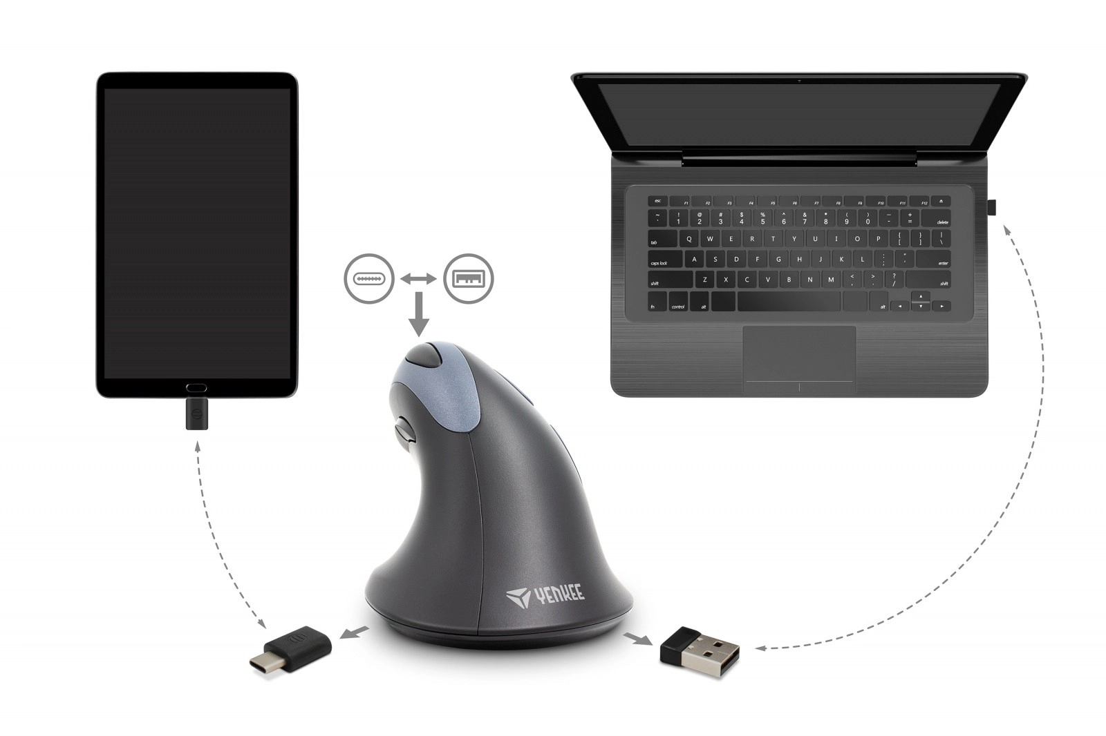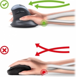 De verticale muis YENKEE ErgoSnug is ontworpen om een ergonomische, natuurlijke handpalmpositie te ondersteunen en het draaien van de onderarm te beperken. Dit vermindert de druk op belangrijke zenuwen in de pols en helpt het risico op carpaletunnelsyndroom (CTS) bij dagelijks computerwerk te minimaliseren.