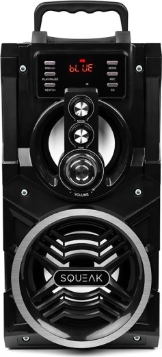 De draagbare luidspreker Squeak BeatBoxer levert krachtig geluid van 20 W, Bluetooth 5.1 + EDR voor een stabiele verbinding, FM-radio met automatische afstemming en een karaokefunctie voor plezier overal. Dankzij de batterij tot 7 uur, opladen via USB‑C en de robuuste MDF‑constructie is hij ideaal voor picknicks, feestjes en thuis luisteren.