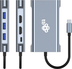 Breid de connectiviteit van je laptop, tablet of telefoon met een enkele USB‑C-poort uit. Deze multifunctionele USB‑C hub 8‑in‑1 maakt het mogelijk om monitoren, een projector, muis, toetsenbord, externe schijf, camera en netwerkkabel tegelijk aan te sluiten – allemaal zonder drivers te installeren. Dankzij USB‑C PD 100 W wordt het hoofdapparaat tegelijk van stroom voorzien terwijl andere randapparaten op volle kracht werken.