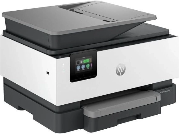 Moderne multifunctionele printer HP OfficeJet Pro 9120b All‑in‑One voor thuiskantoor en kleine bedrijven. Biedt snelle kleurafdrukken, een automatische documentinvoer, een touchscreen en draadloze verbinding voor eenvoudig delen en mobiel printen.