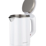 Het model SEK11 met een inhoud van 0,6 l is ideaal voor kleine of minimalistische keukens. De elegante witte behuizing past in elk interieur waar uitstraling en praktisch gebruik centraal staan. Met een maximaal vermogen van 800 W kook je snel water voor thee of koffie, wat vooral belangrijk is tijdens de ochtendspits naar werk of school.