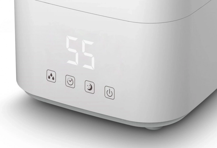 Het intuïtieve LED-aanraakpaneel maakt het mogelijk de hoeveelheid gegenereerde nevel te regelen en informeert je over het luchtvochtigheidsniveau. Het waterreservoir van vier liter met een handig bovenvulsysteem is zeer eenvoudig te reinigen en te bedienen. Het vervangbare harsfilter verzacht het water en vermindert de kalkaanslag.