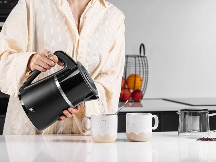 De LAFE elektrische waterkoker met temperatuurregeling is een handige hulp in elke keuken. Dubbele wanden zorgen voor veiligheid tijdens het koken doordat de buitenkant niet heet wordt. Het moderne design wordt aangevuld met hoogwaardige materialen. De waterkoker maakt traploze temperatuurregeling in stappen van 5 °C mogelijk, van 40 tot 100 °C, ideaal voor verschillende dranken.