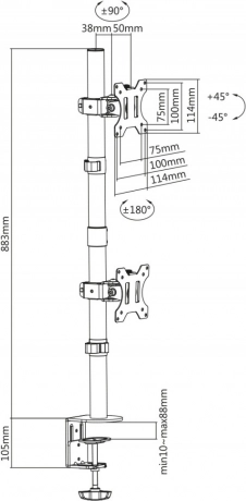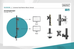 De bureausteun is ideaal voor werkomgevingen waar een ergonomische plaatsing van monitoren nodig is. Hij maakt het eenvoudig om de hoogte en posities van twee boven elkaar geplaatste monitoren aan te passen. Compatibel met monitoren tot een diagonaal van 32 inch en een gewicht tot 8 kg.