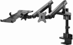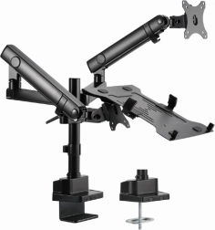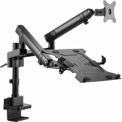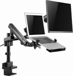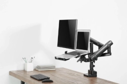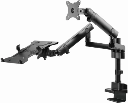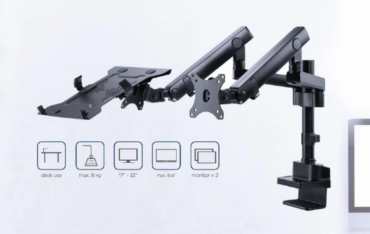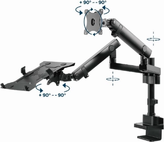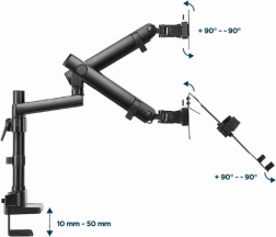 Ergonomische en flexibele standaard voor monitor en laptop, die zorgt voor een ideale indeling van je werkplek en je productiviteit verhoogt.