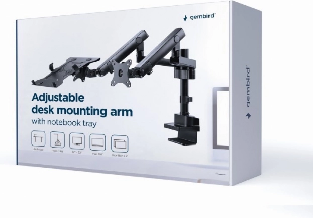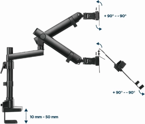 - Stevige bureauklem of doorvoer voor eenvoudige en veilige montage aan het bureau.