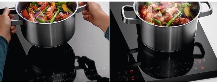 De kookplaat communiceert draadloos met een compatibele afzuigkap en past automatisch het afzuigvermogen en de verlichting aan op basis van de kookintensiteit. Aanbevolen afzuigkap: LFG716R H2H.