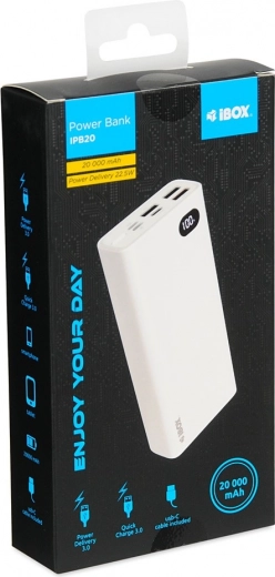 Geniet van vrijheid zonder stopcontact. Deze compacte en duurzame powerbank met een grote capaciteit van 20.000 mAh laadt je telefoon, tablet en oordopjes betrouwbaar op. Dankzij ondersteuning voor snelladen via Power Delivery (PD) en Quick Charge (QC) vul je energie razendsnel aan, via de universele USB‑C‑ en USB‑A‑poorten. Het overzichtelijke LCD‑display geeft exact de resterende capaciteit weer, zodat je altijd weet wanneer het tijd is om op te laden.