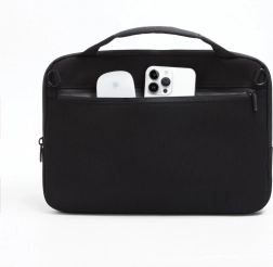 Het praktische voorvak biedt ruimte aan lader, muis, telefoon en kleine benodigdheden. Alles heb je overzichtelijk bij de hand zonder het hoofdvak te openen.