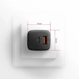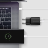 Laad twee apparaten tegelijk op. USB‑A met QC 3.0 tot 18 W en USB‑C met PD 20 W. Het totale uitgangsvermogen van de oplader is 20 W met slimme verdeling.