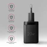 - tot 20 W: 5 V/3 A, 9 V/2.22 A, 12 V/1.67 A; PPS 3.3–11 V/2 A; PD 3.0/2.0, QC 4+/3.0/2.0, PE+, SMART, Apple PD