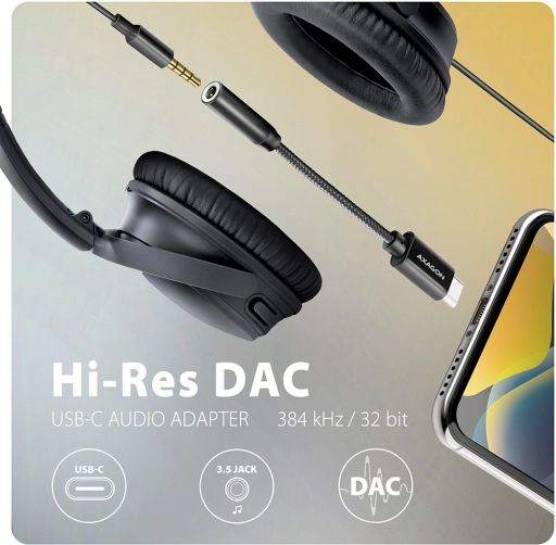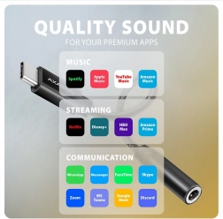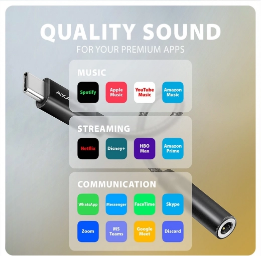 Geniet van muziek in hogere kwaliteit dan via de standaard laptopuitgang. De AXAGON ADA‑HC met krachtige Hi‑Res DAC 384 kHz/32 bit levert een brede dynamiek en lage vervorming, zodat lossless‑formaten zoals FLAC, WAV, ALAC en premium streams van Spotify, Apple Music, YouTube Music of Amazon Music volledig tot hun recht komen. Via de gecombineerde 3,5 mm TRRS‑connector sluit je zowel een koptelefoon als een headset met microfoon aan en handel je comfortabel gesprekken af in WhatsApp, Messenger, FaceTime, Skype, Zoom, MS Teams, Google Meet of Discord.