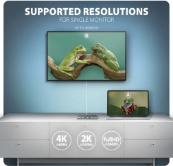 - Krachtige video: 4K/60 Hz, 2K/120 Hz, Full HD/240 Hz, HDR, HDCP 1.4/2.3 (vereist USB‑C met DP Alt Mode 1.4+ of Thunderbolt 3/4).