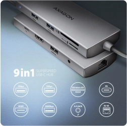 Breid je laptop, pc of telefoon uit met negen poorten in één compact apparaat. Deze universele USB‑C‑hub biedt 3× USB‑A, HDMI tot 4K/60 Hz, Gigabit Ethernet, een gecombineerde 3,5mm audiojack, een SD/microSD‑kaartlezer en doorvoer USB‑C Power Delivery 100 W. Aluminium behuizing zorgt voor elegantie en duurzaamheid, aansluiten is eenvoudig dankzij Plug & Play en Hot Plug.