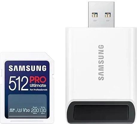 De professionele Samsung PRO Ultimate SD-geheugenkaart biedt leessnelheden tot 200 MB/s en schrijfsnelheden tot 130 MB/s, ideaal voor UHD 4K‑video en serieopnamen. Betrouwbare prestatie, stabiliteit en duurzaamheid voor fotografen en contentmakers, plus een praktische kaartlezer.