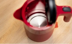 Het praktische deksel openen met een knop en de brede vulopening maken bijvullen en reinigen eenvoudig. Het transparante waterpeilvenster garandeert dat je altijd de juiste hoeveelheid vult. Voor zorgeloos gebruik zorgt automatische uitschakeling bij koken of het optillen van de kan, plus droogkookbeveiliging.