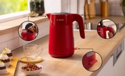 Stijlvolle BOSCH MyMoment waterkoker met een inhoud van 1,7 l in elegant rood, ideaal voor dagelijks gebruik. Biedt comfortabel deksel openen met een druk op de knop, een één-kop indicator voor tijd- en energiebesparing, een uitneembaar anti-kalkfilter en een goed afleesbaar waterpeilvenster. Voor veilig gebruik zorgt een driedubbel veiligheidssysteem met automatische uitschakeling.