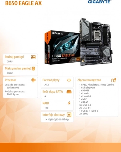 Bouw een krachtige pc met de Gigabyte B650 Eagle AX, klaar voor AMD Ryzen 7000-processors op AM5. De robuuste 12+2+2 digitale VRM zorgt voor stabiliteit bij veeleisende taken en overklokken, terwijl vier DDR5-slots met EXPO/XMP-ondersteuning je het maximale uit moderne geheugens laten halen.