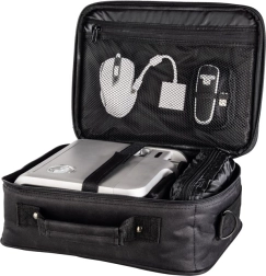 Zoek je betrouwbare bescherming voor je projector, voor onderweg en op kantoor? Deze zwarte tas combineert een stabiele constructie met een praktische vakindeling. Dankzij de voering en bevestigingselementen minimaliseert hij het risico op beschadiging en houdt hij je apparaat veilig.