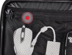 Het doordachte interieur met een schuifbaar en uitneembaar tussenschot maakt het eenvoudig om de ruimte aan te passen voor projector en accessoires. Een apart documentenvak, een interne meshvak met verborgen rits en een voorvak aan de buitenkant zorgen voor overzichtelijke opslag van alle benodigdheden – van kabels tot afstandsbediening.