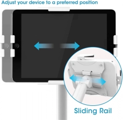 Vrijstaande vloerstandaard met verstelbare hoogte voor tablets van 7,9" tot 11", 360° rotatie, kanteling +20° tot -110°, wit