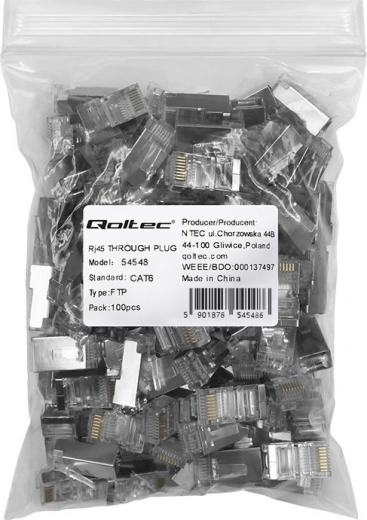 De doorvoerkoppeling RJ45 is compatibel met FTP Cat6 patchkabels. Het ontwerp maakt het mogelijk dat alle acht aders door de connector worden geleid, wat zorgt voor een betere en preciezere krimp. Vergulde contacten garanderen langere levensduur en betrouwbaarheid van de verbinding.