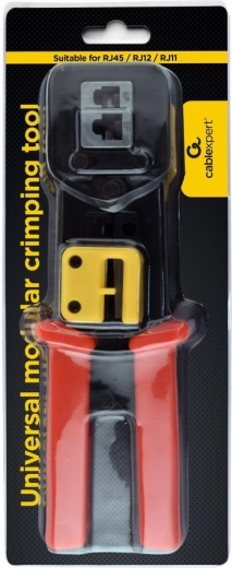 Universele krimptang voor RJ45-, RJ12- en RJ11-connectoren, ideaal voor efficiënt en nauwkeurig krimpen. Dankzij de robuuste constructie en ergonomische eigenschappen vergemakkelijkt hij het werk en zorgt hij voor een lange levensduur.