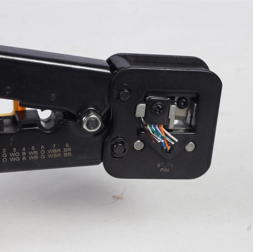 Deze krimptang is ontworpen voor zowel professioneel gebruik als voor doe-het-zelvers. Maakt krimpen, knippen en strippen van kabels in één beweging mogelijk. Dankzij de comfortabele ergonomische greep is het gebruik eenvoudig en efficiënt. Compatibel met de meeste modulaire doorvoerconnectoren en geschikt voor standaard modulaire connectoren 8P8C, 6P6C en 6P4C.