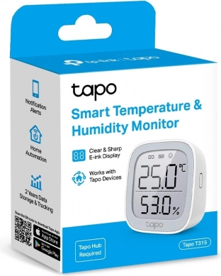 De Tapo temperatuur- en vochtigheidssensor biedt nauwkeurige monitoring van klimaatomstandigheden in real time met een nauwkeurigheid van +/‑0,3 °C en +/‑3% RV. Het 2,7‑inch E‑Ink‑display toont temperatuur, luchtvochtigheid, comfortniveau en andere nuttige informatie.
