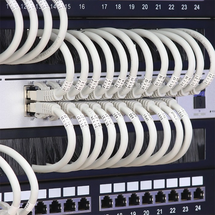 Duidelijke markering en geleiding van kabels versnellen het onderhoud en minimaliseren poortverwisselingen. De borsteldoorvoer beperkt bovendien de indringing van stof.