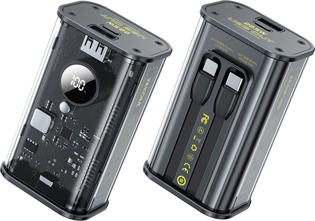 De WEKOME WP-345 Vanguard powerbank is een stijlvolle en duurzame oplossing voor het dagelijks opladen van je telefoon, tablet of oordopjes. Dankzij ondersteuning voor Power Delivery 20 W en Quick Charge 22,5 W vult hij energie snel en efficiënt aan, terwijl de ingebouwde USB‑C- en Lightning-kabels het gebruik vereenvoudigen zonder extra accessoires mee te hoeven nemen. Het praktische LED‑display toont het capaciteitspercentage, zodat je de batterijstatus altijd onder controle hebt.
