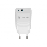 Natec Ribera GaN USB-oplader met 1x USB-A en 1x USB-C 30W wit