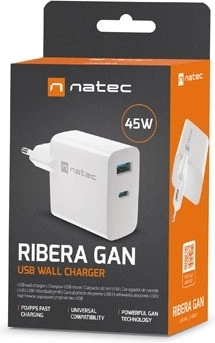 Sneller en efficiënter opladen met de Natec Ribera GaN dankzij twee USB-poorten (USB-A en USB-C) met 45 W vermogen. Ondersteunt snellaadtechnologieën zoals Power Delivery 3.0, Quick Charge 3.0, Samsung AFC, Huawei FCP/SCP en gebruikt het PPS-protocol voor automatische aanpassing van laadparameters. Geschikt voor het opladen van diverse apparaten, ongeacht het merk, waardoor je tijd bespaart.