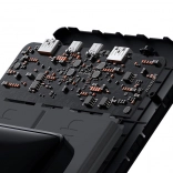 Twee USB‑C en twee USB‑A poorten laten je tot vier apparaten tegelijk opladen. Baseus BPS II verdeelt het vermogen intelligent en de beschermingssets voorkomen overladen, oververhitting en kortsluiting.