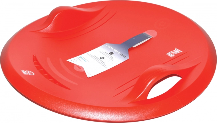Geniet volop van winterplezier met de sneeuwschijf SUPERNOVA met een diameter van 60 cm. Duurzame kunststof, geïntegreerde handgrepen voor een zekere grip en een antislipoppervlak voor extra veiligheid. Eenvoudig sturen door te kantelen en remmen door achterover te leunen. Licht (0,68 kg) maar stabiel, met een draagvermogen van 50 kg en een breed bedrijfstemperatuurbereik van -20 tot 70 °C.