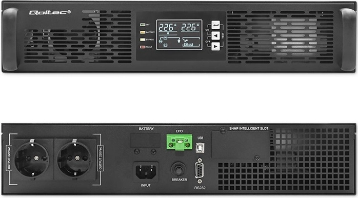 De on-line Qoltec UPS voor een 19"-rack is een betrouwbare partner voor servers, netwerkcomponenten en gevoelige elektronica. De double conversion-technologie levert een stabiele en schone spanning met een sinusgolf, die netfluctuaties, spanningsdips, overspanningen en storingen elimineert. Nul omschakeltijd garandeert ononderbroken werking en dataveiligheid.